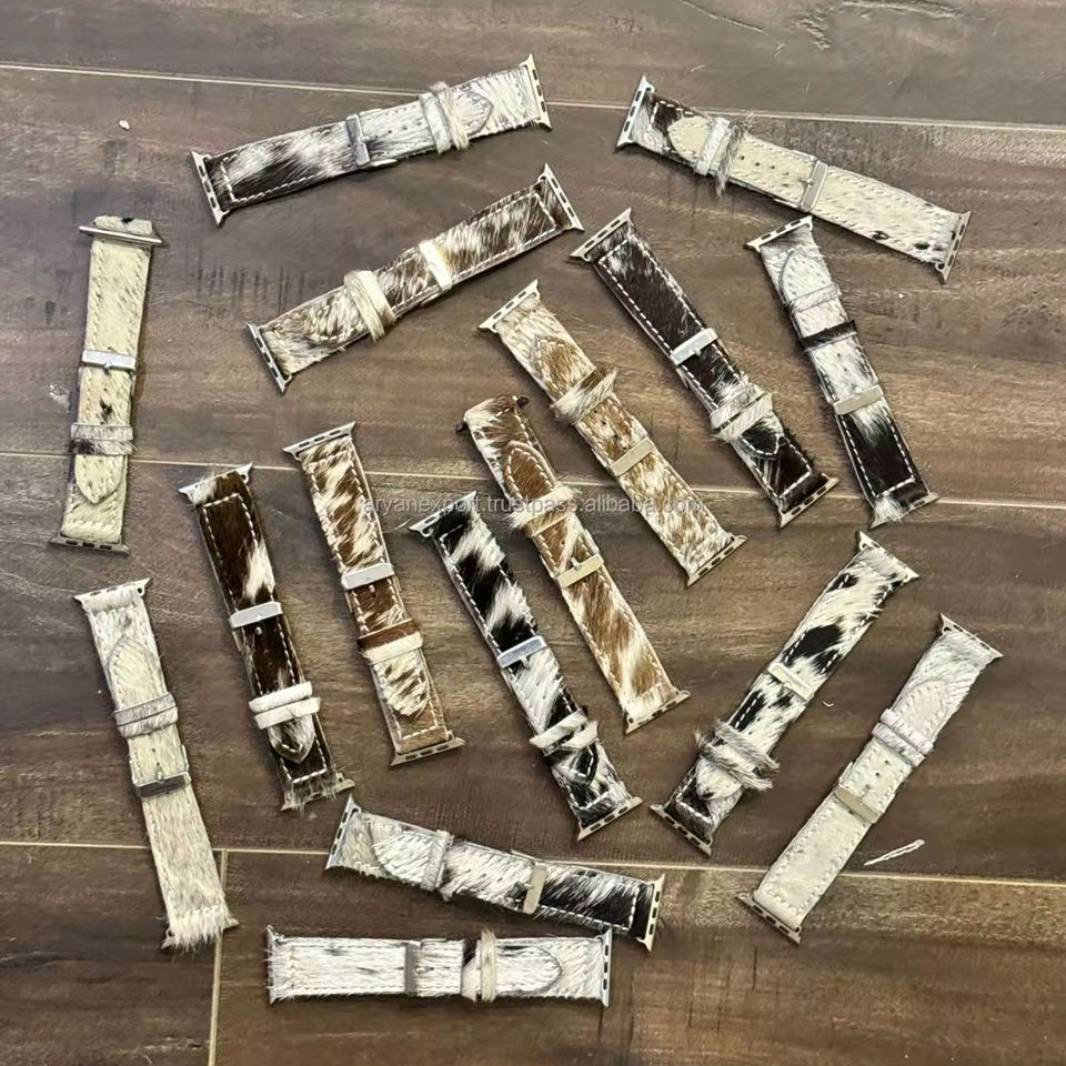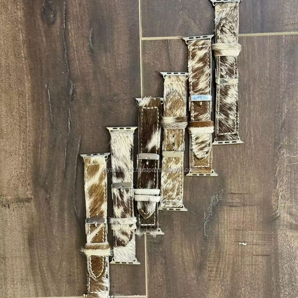 Custom Hair on Cowhide Western Watch Band Hot Sale Genuine Leather Watch Strap Brown Black Watch Band Accessories Men & Women's