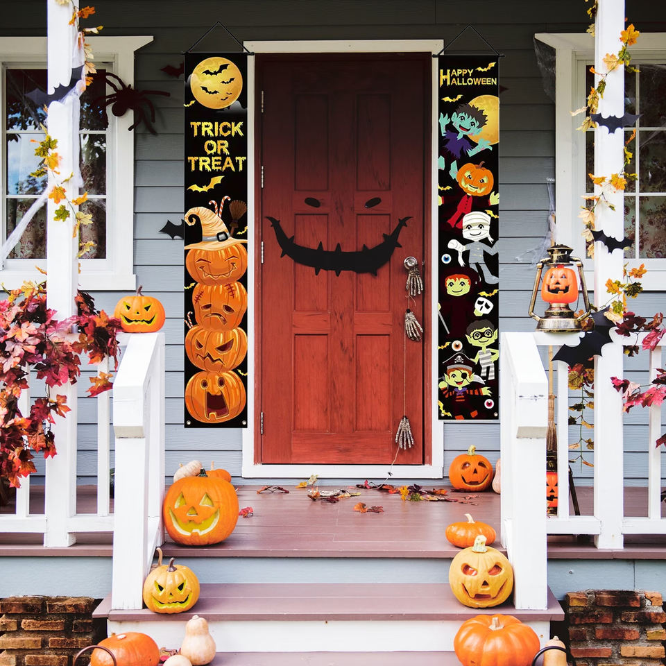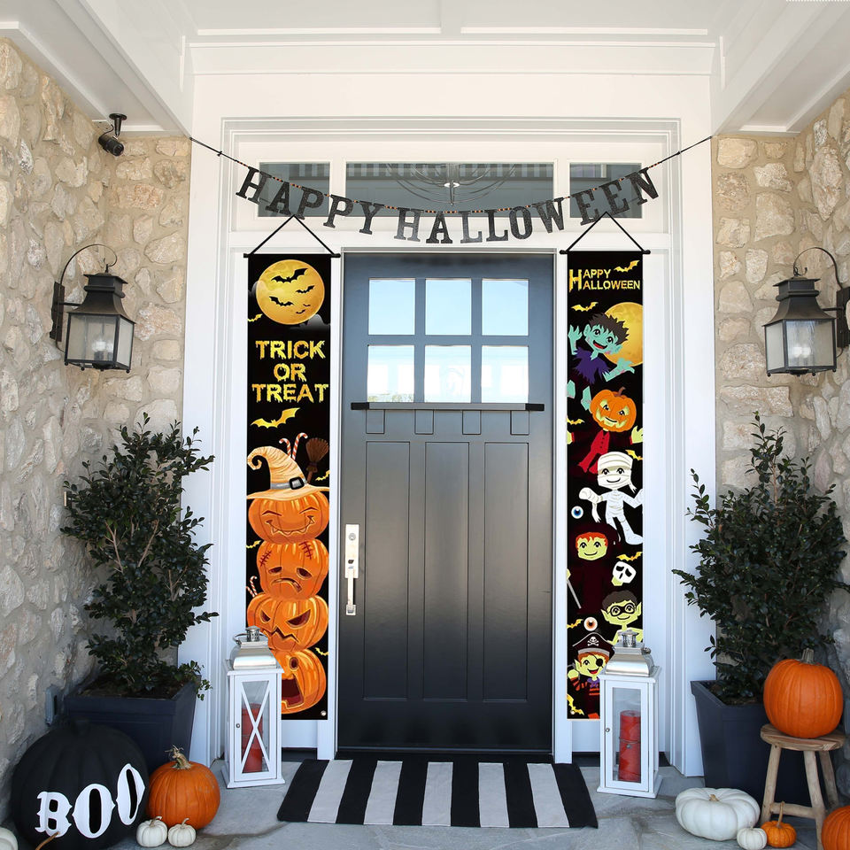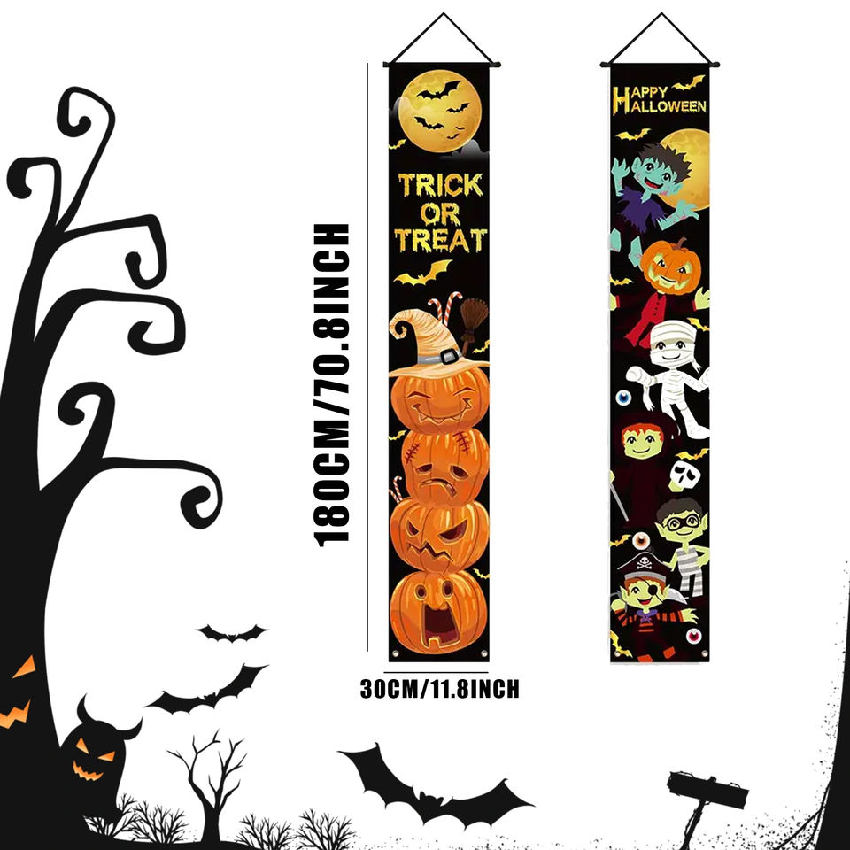 Custom Halloween Banner Set 2 Pieces for Indoor & Outdoor Festivals Digital Printed Wall & Door Decoration for Parties