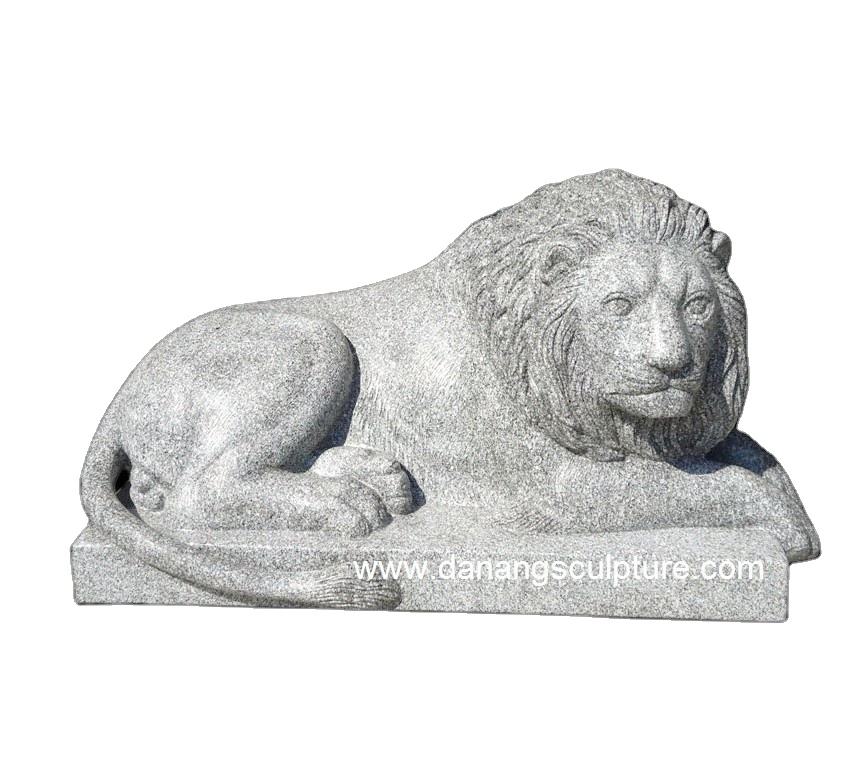 Custom Hand-Carved Outdoor Natural Marble Stone Lion Statues - King Lion with Royal Crown for Garden or Estate Decoration