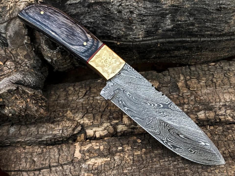 Custom Hand Forged Damascus Steel EDC Engraved Hunting Knife Full Tang OEM Supported Fixed Blade Camping Knife Industrial Grade