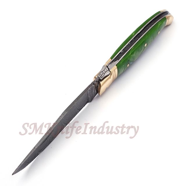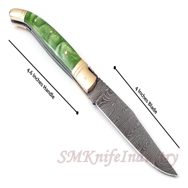 Custom Hand Forged Pocket Knife Hand Made Damascus Folding Knife with Leather Sheath Cover (smk1692)