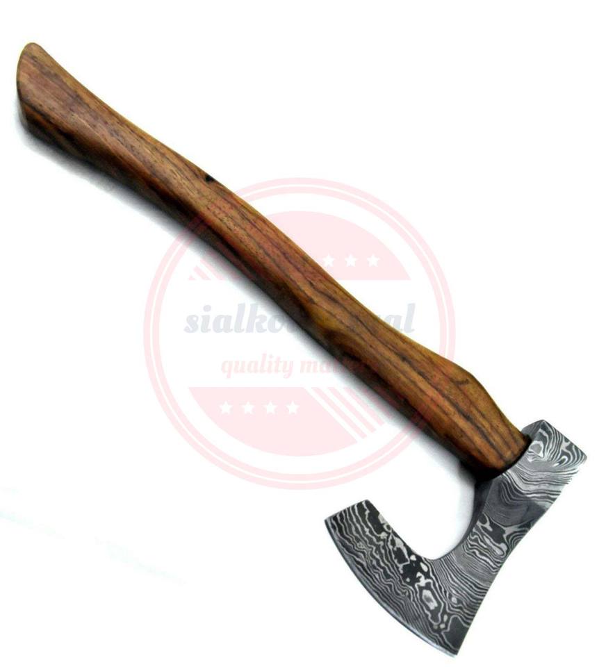 Custom Hand Made Damascus Tomahawk Axe Hunting Hacthet Axe with Wooden Handle