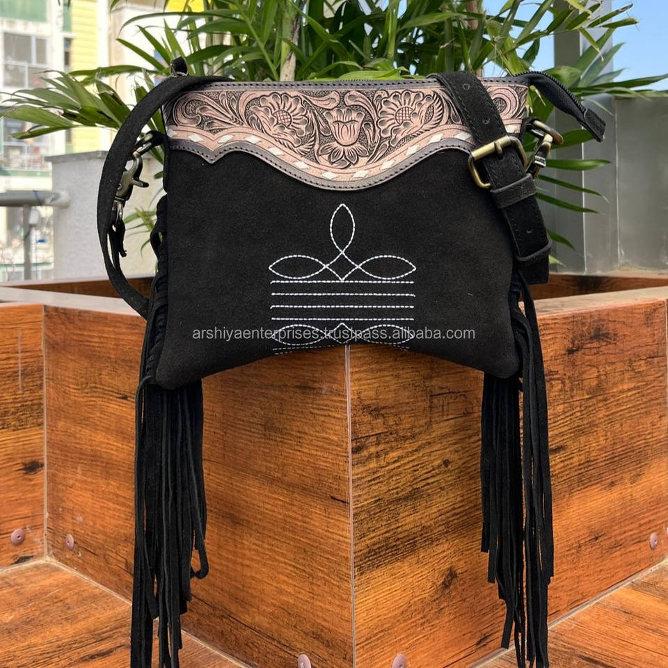Product name:Hand Tooled Suede Leather Fringe Purse
