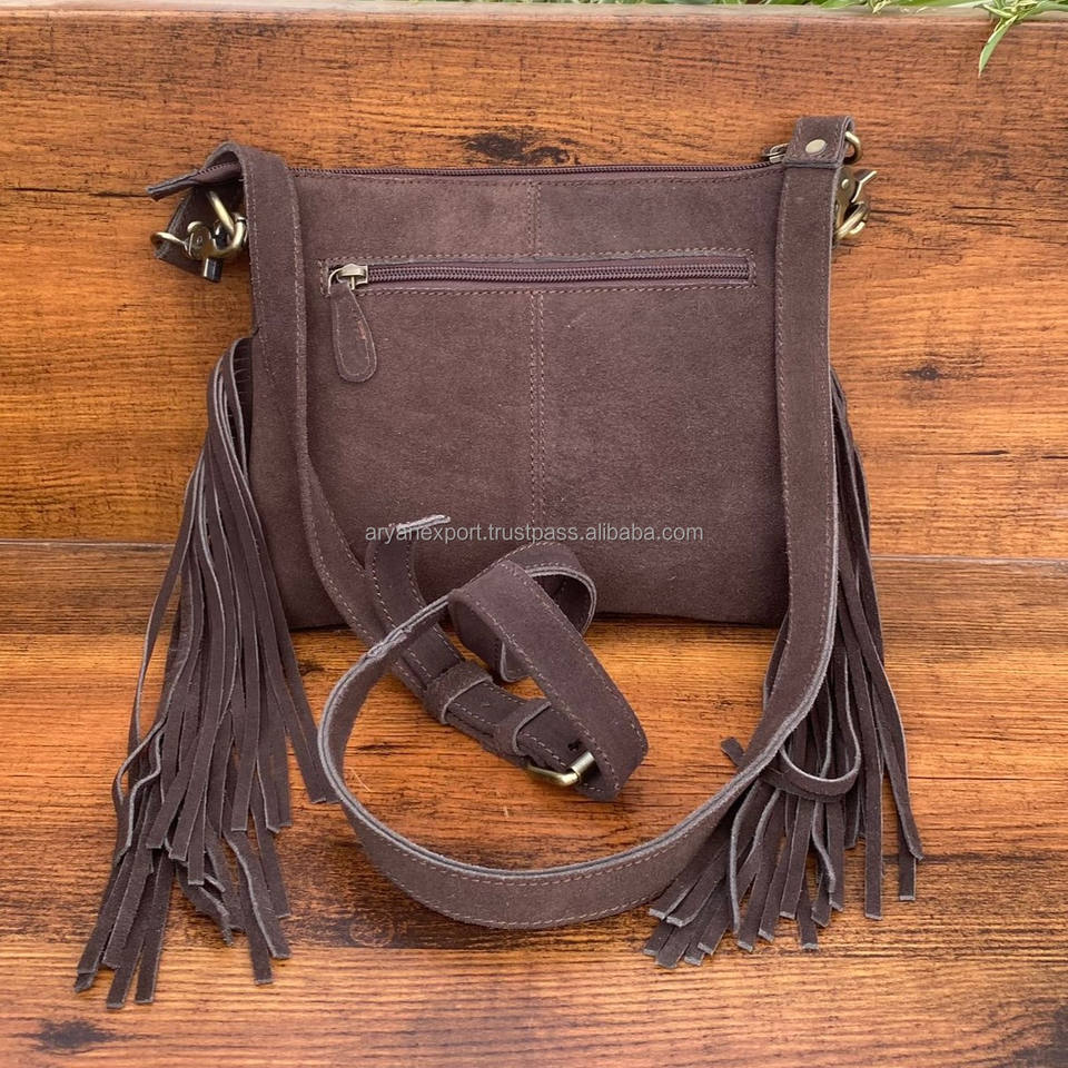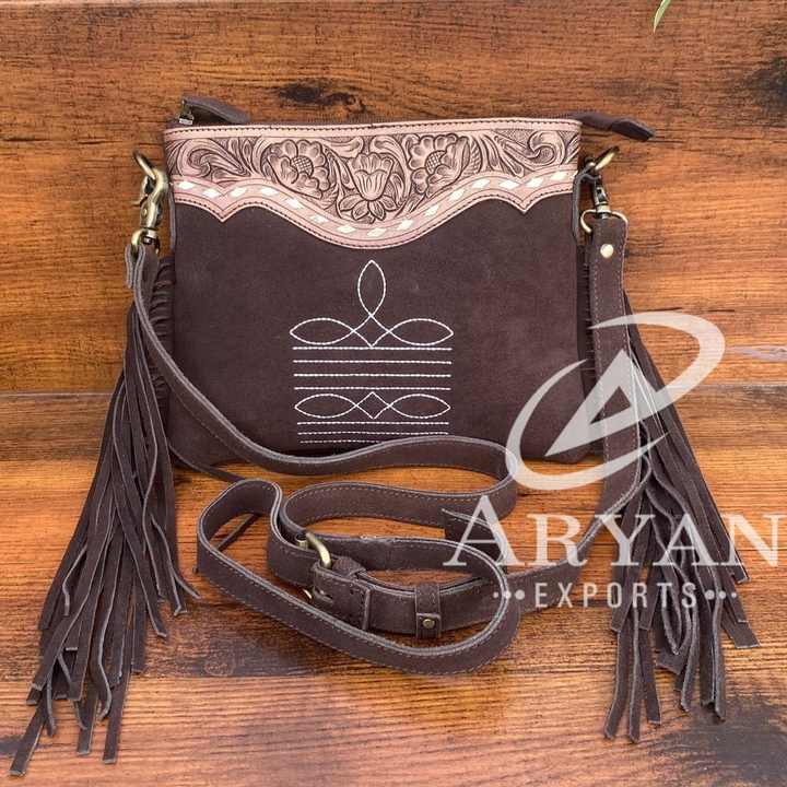 Product name:Hand Tooled Suede Leather Fringe Purse