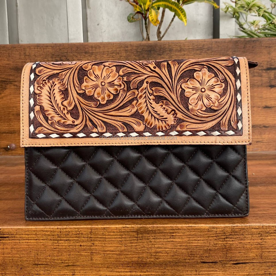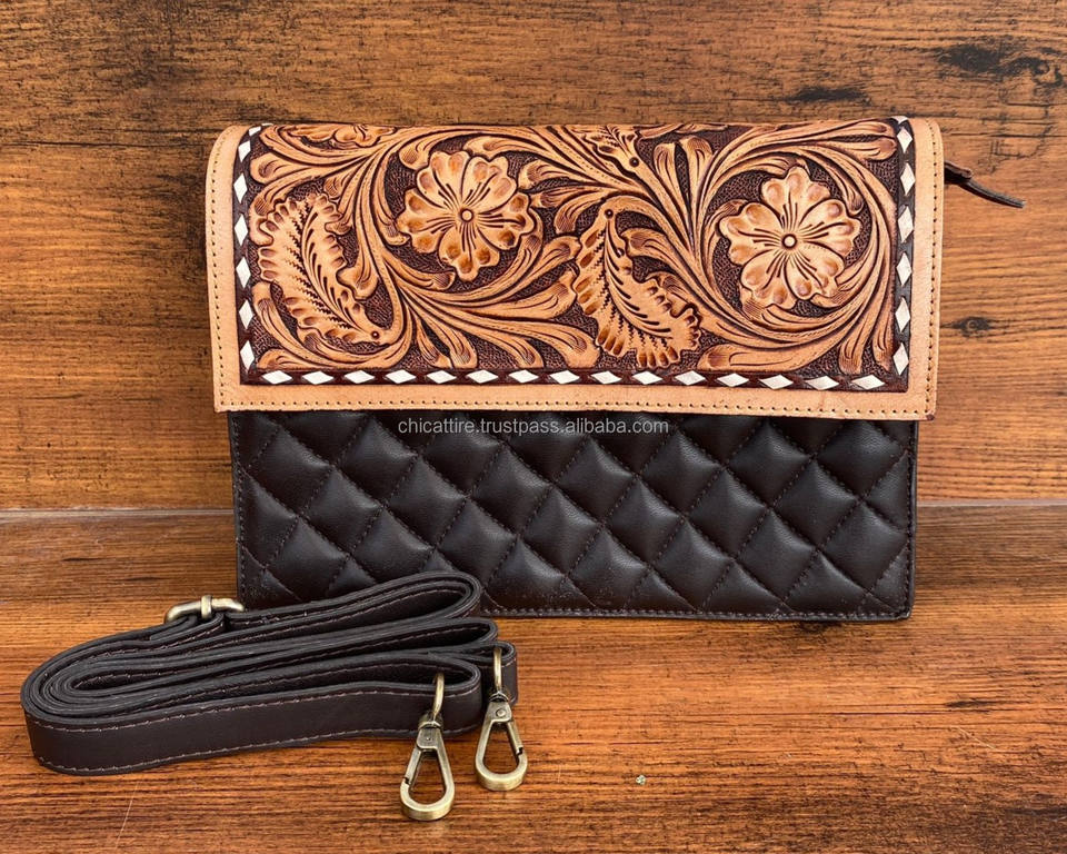 Product name:Hand Tooled Quilted Leather Crossbody Bag