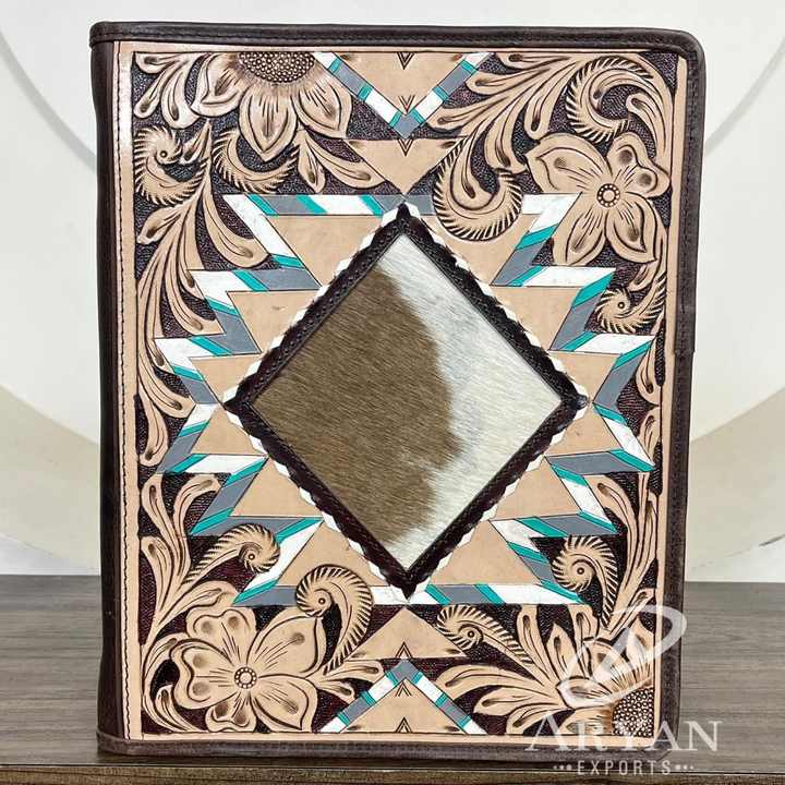 Custom Hand Tooled Leather Portfolio A4 3 Ring Binder Cover Western Document Organizer Journal Notebook File Folders for Unisex