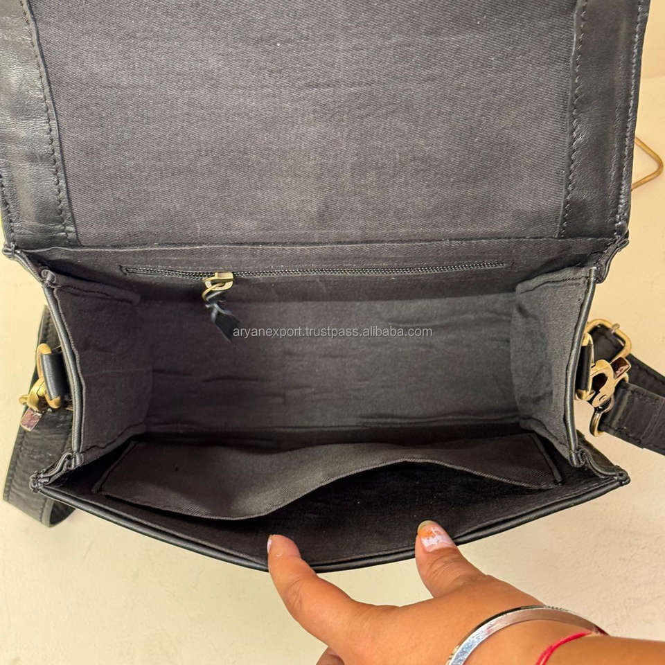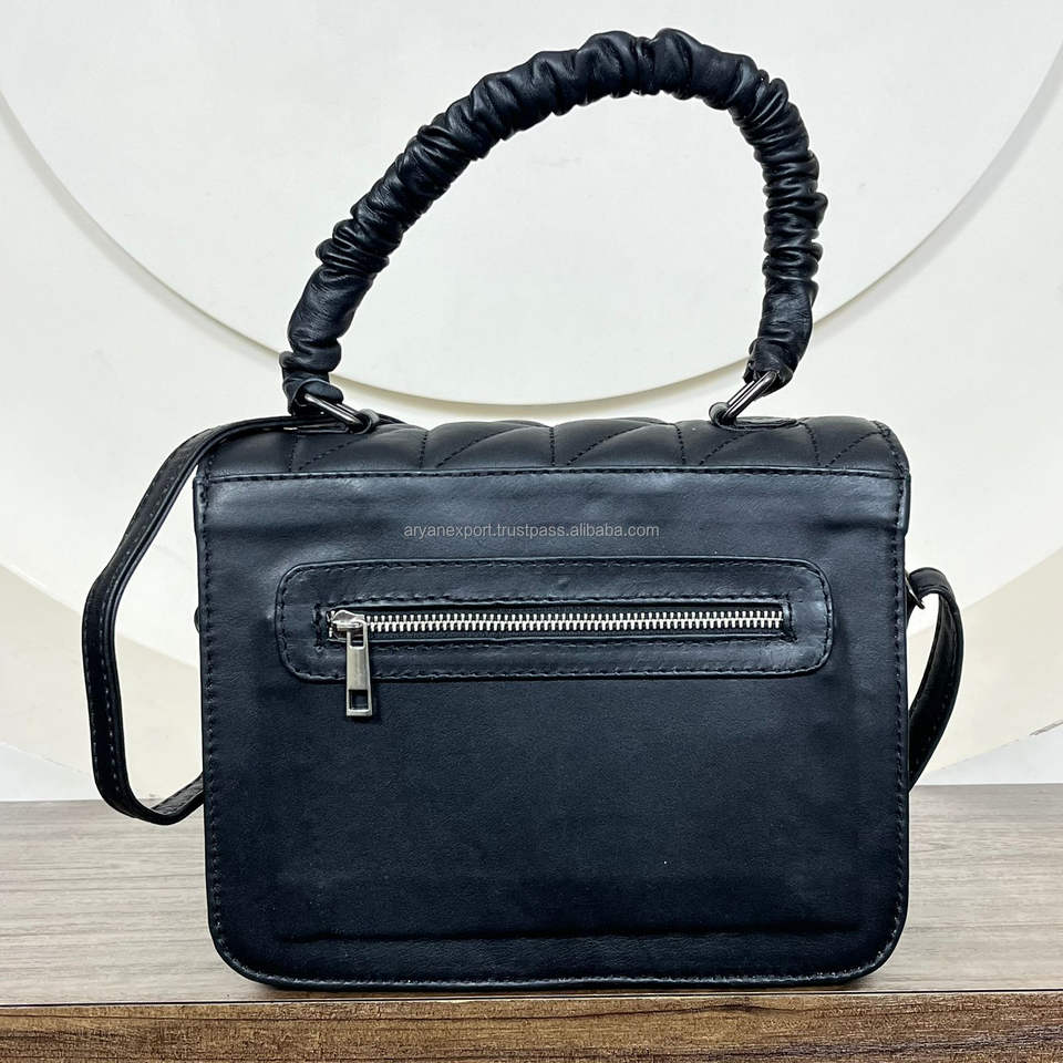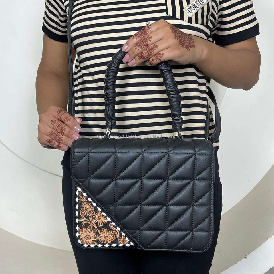 Custom Hand Tooled Quilted Leather Fold-Over Flap Crossbody Bag for Women's High Quality Genuine Leather Ruffles Handle Handbags