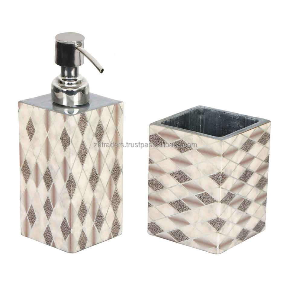 Custom Hand-painted Love Resin Bathroom Set 10-Piece with Model Pattern Toothbrush Holder Soap Dispenser and Resin Mirror