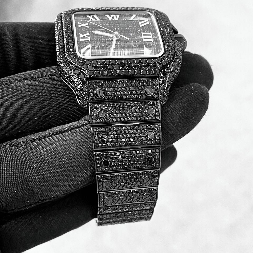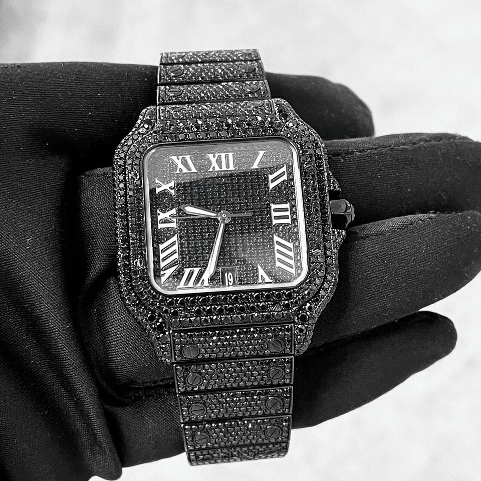 Custom Handcrafted Men's Hip Hop Watches VVS1 Moissanite Diamond & Stainless Steel Belt Automatic Analog Dial Display
