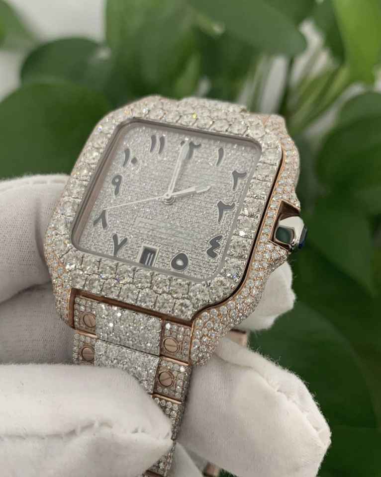 Custom Handcrafted Men's Hip Hop Watches VVS1 Moissanite Diamond & Stainless Steel Belt Automatic Analog Dial Display
