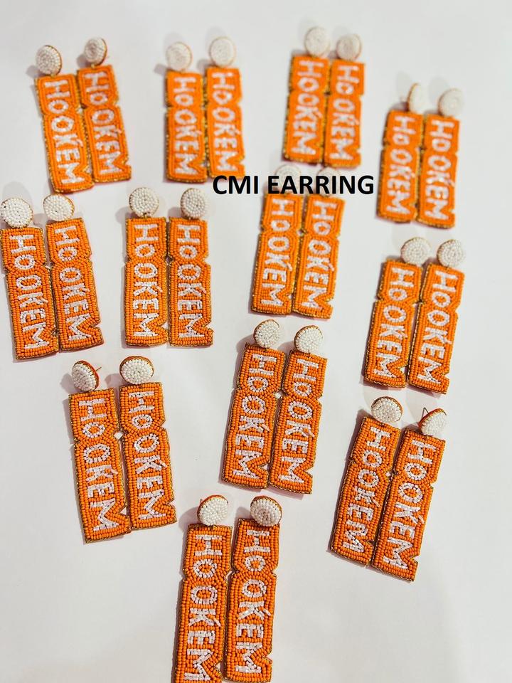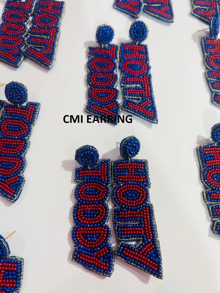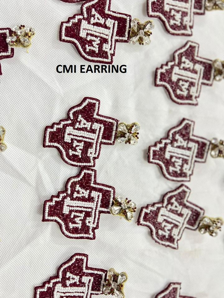 Custom Handcrafted Silver Gameday Football Seed Beaded Earrings Unique Design with Team Colors for Sports Fans