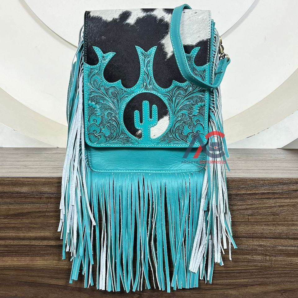 Product name:Hand Tooled Leather Fringe Crossbody Bag