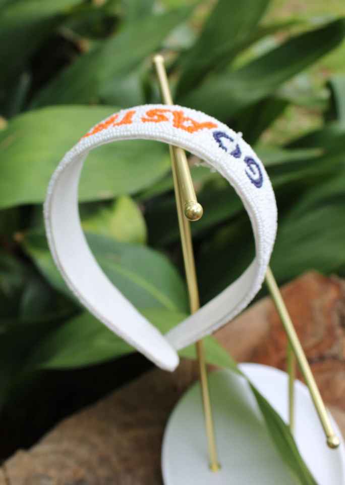Custom Handmade Beaded Letter Headband Hairband Personalized Game Day Luxury Bead Embroidery Fabric Hair Accessories Women Girls