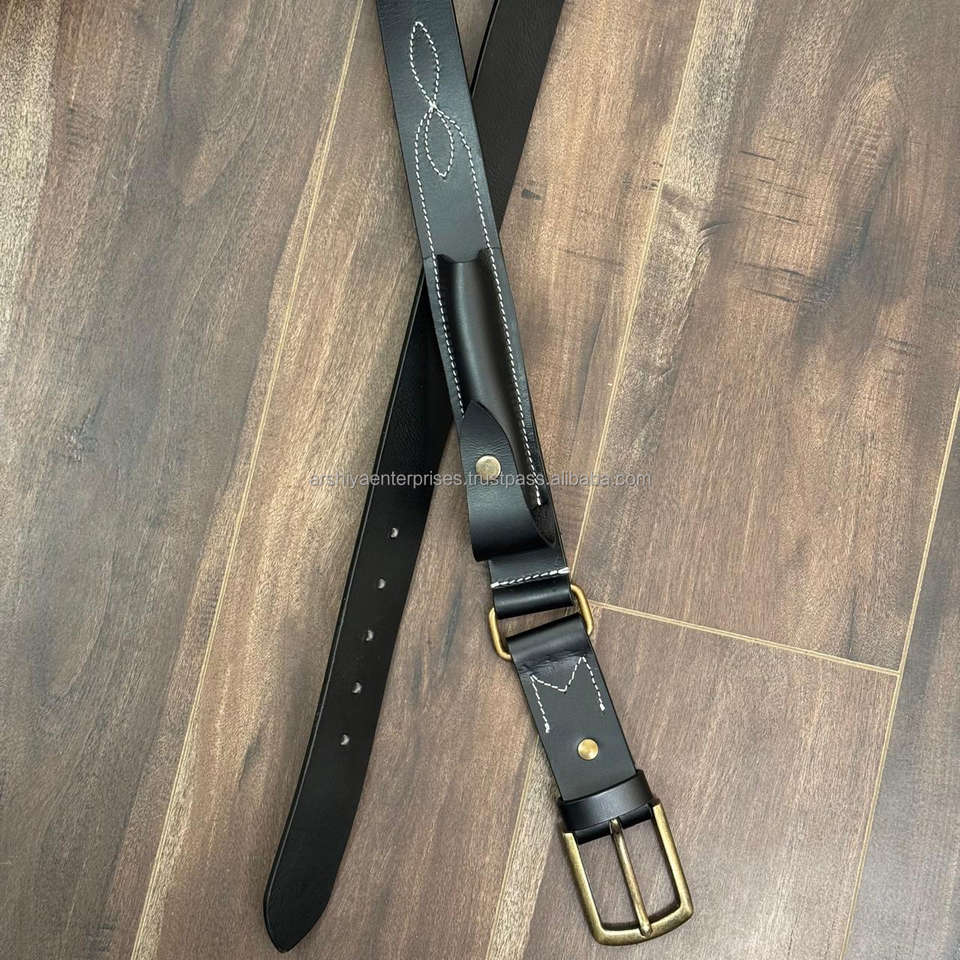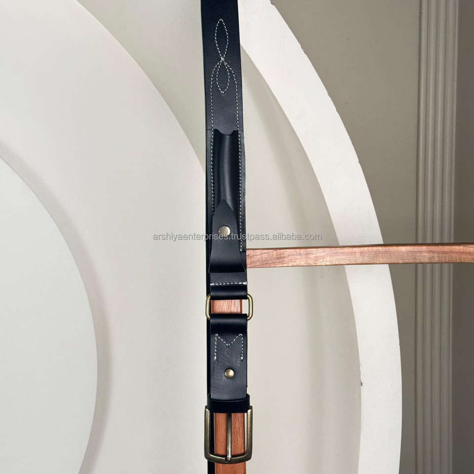 Custom Handmade Boot Stitch Full Grain Leather Hobble Belt with Knife Pouch Adjustable Restraint Bondage Belt for Outdoor Use