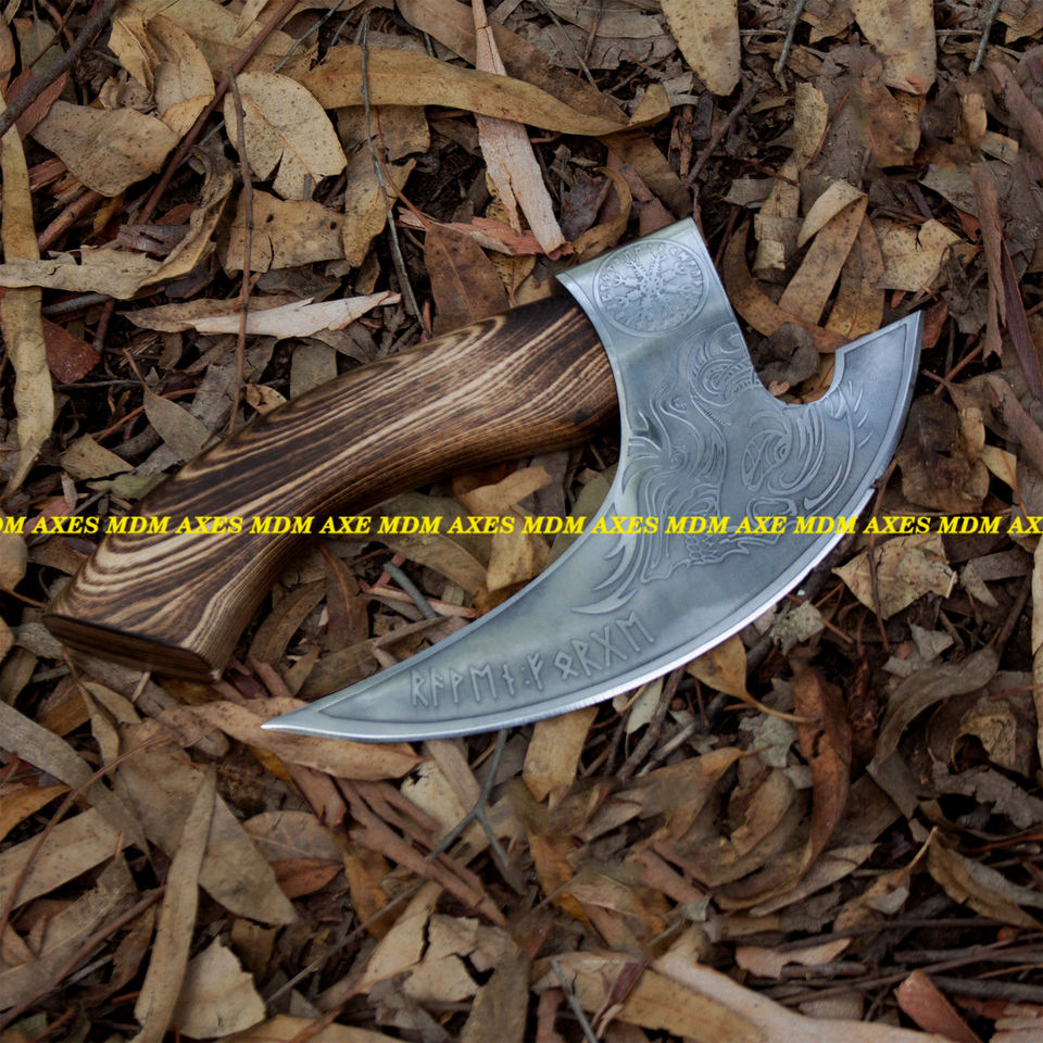 Custom Handmade Carbon Steel Pizza Cutter Viking Hatchet Tomahawk Capming AXE with Beautiful Wooden Box for DIY & Industrial Use
