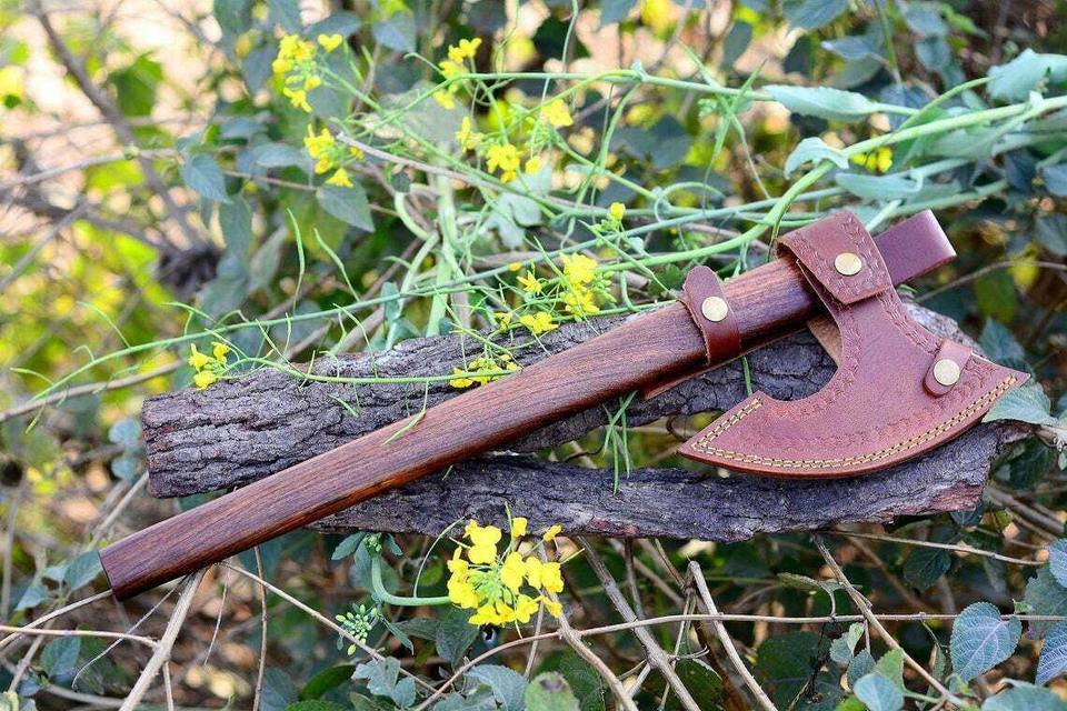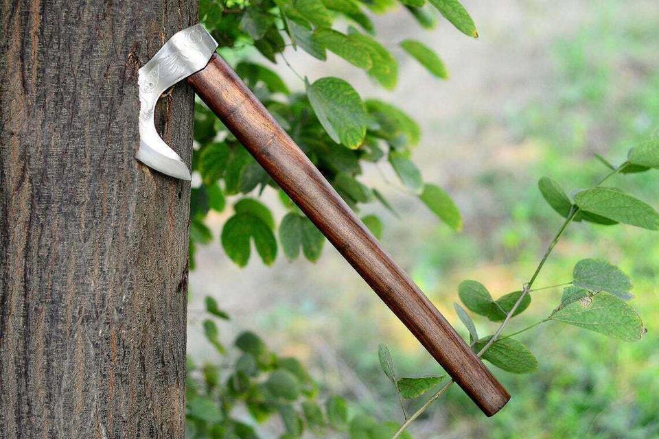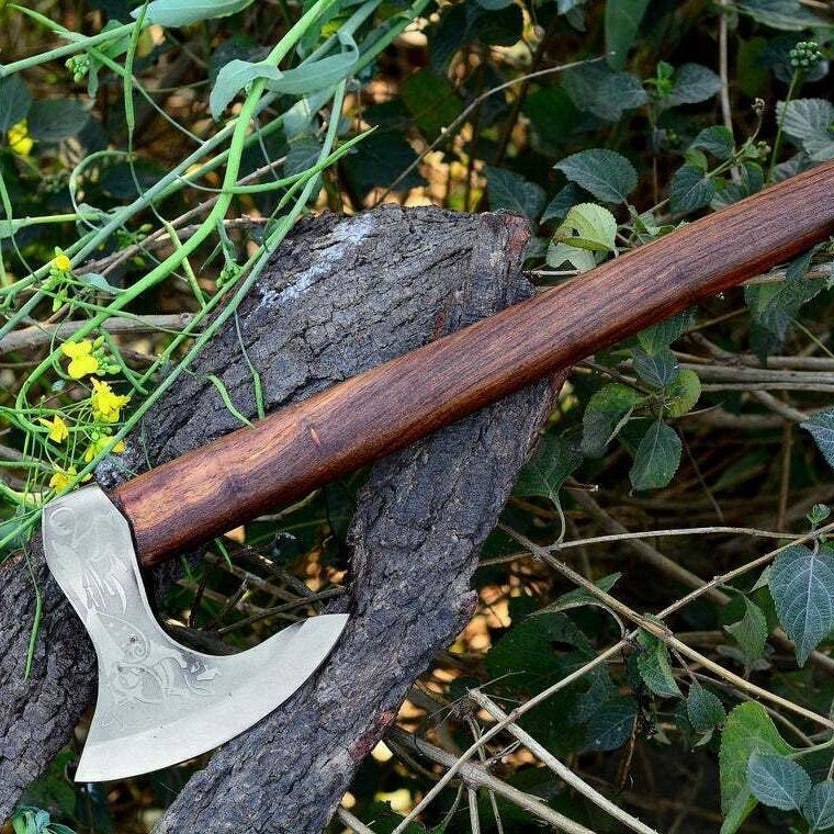 Custom Handmade Carbon Steel Viking Axe Bearded Axe Survival Outdoor axe With Wooden Handle