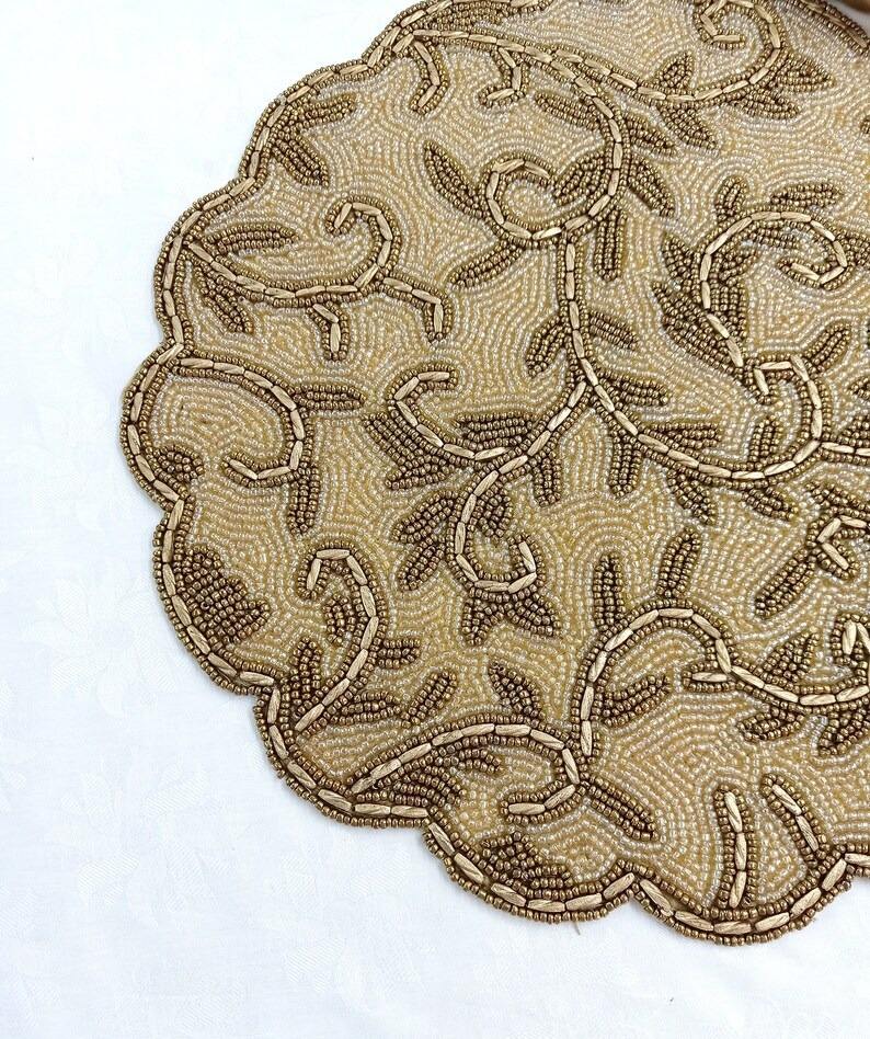 Custom Handmade Classic Round Beaded Eco-Friendly Placemats Sky Blue & White Glass Beads for Table Setting MOP Inlay Coasters