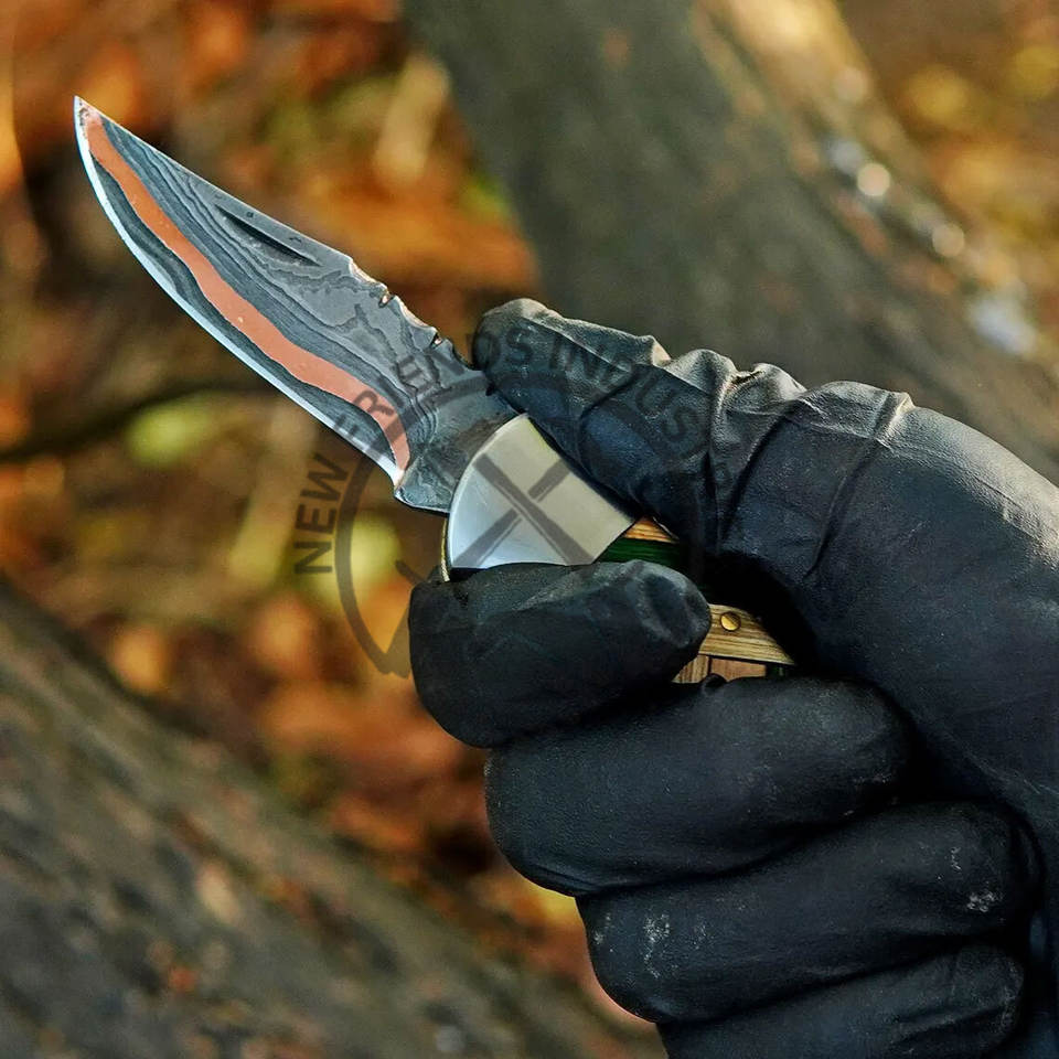 Copper Damascus Steel Folding Knife / Pocket Knife
