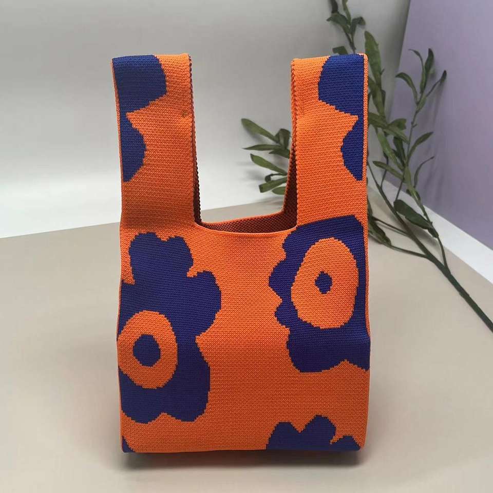 Custom Handmade Crochet Tote Bag Ladies Knitted Handbag with Two Open Foldable Design Polyester Christmas Pattern