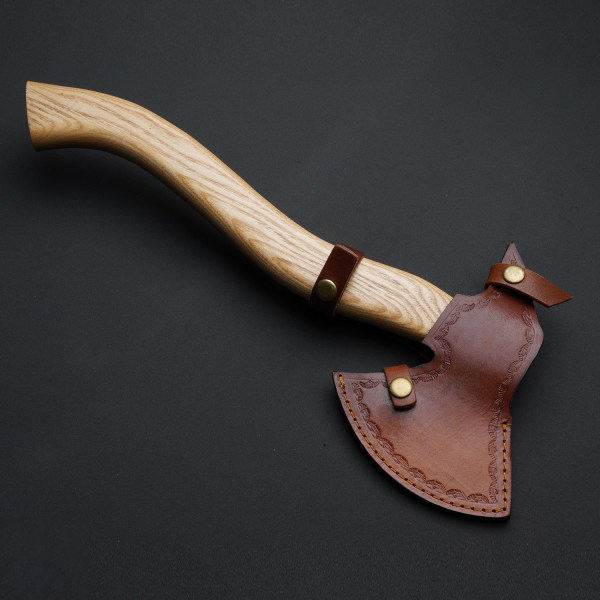 Custom Handmade Damascus Steel Axe with Leather Sheath Outdoor Camping Hatchet Damascus Axes
