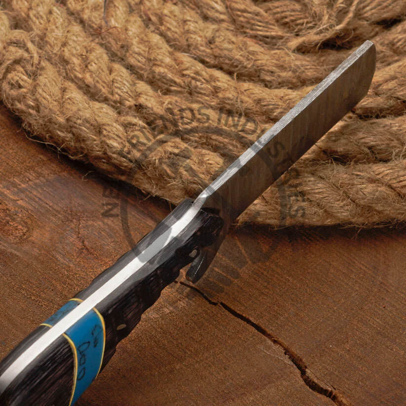 Custom Handmade Damascus Steel Cow Boy Knife Bull Cutter Knife PakkaWood & Resin Handle Leather Sheath DIY Grade OEM/ODM Support