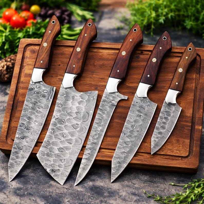Custom Handmade Damascus Steel Full Tang Durable Kitchen Knife Set Professional Cleaver Fillet Paring Professional Kitchen Set