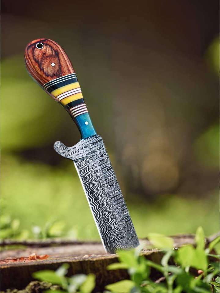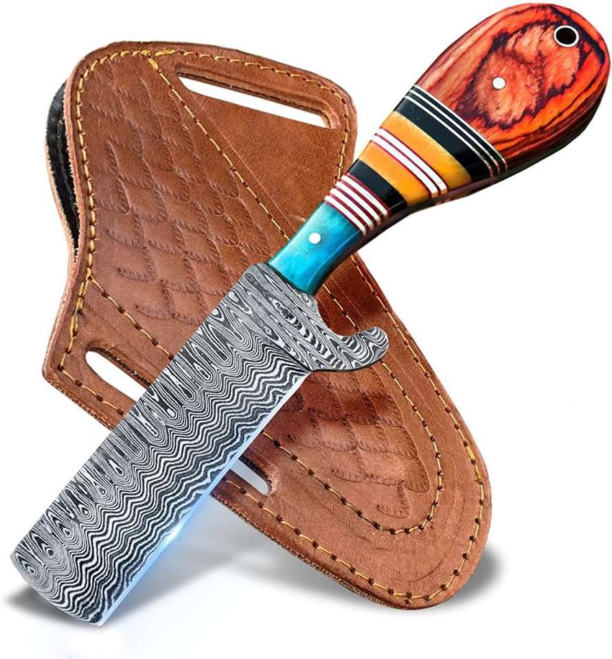 Hand Forged Damascus Steel Ladder Pattern Western Bull Cutter Knife