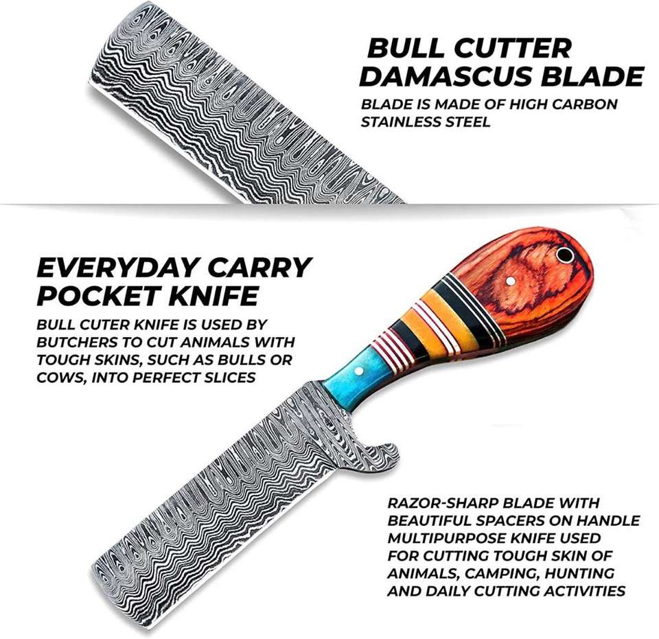 Name:Hand Forged Damascus Steel Ladder Pattern Western Bull Cutter Knife
