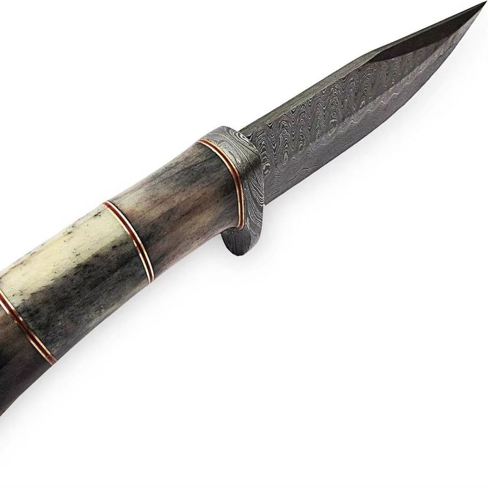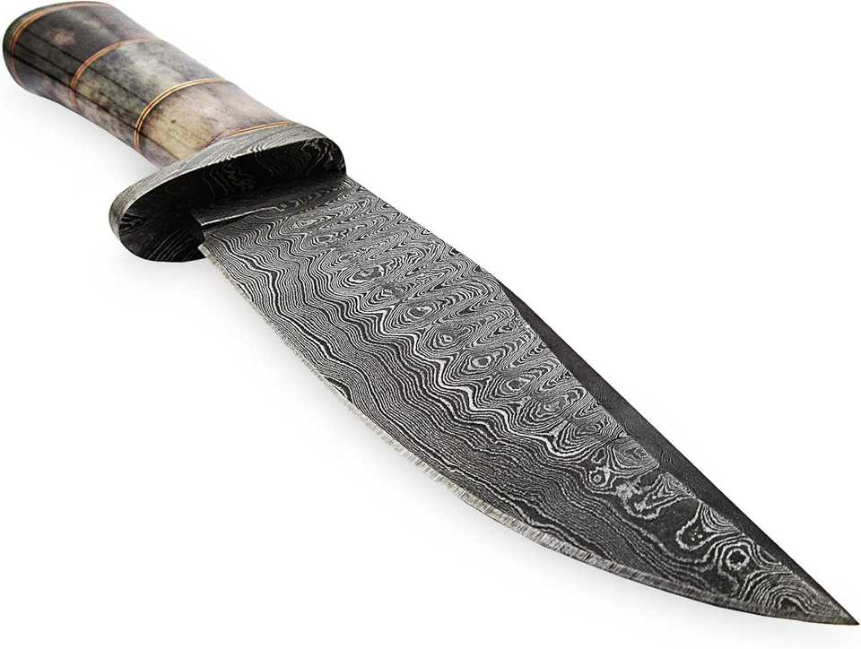 Custom Handmade Damascus Steel Camping Knife with Wood Handle OEM Best Product with Leather Sheath