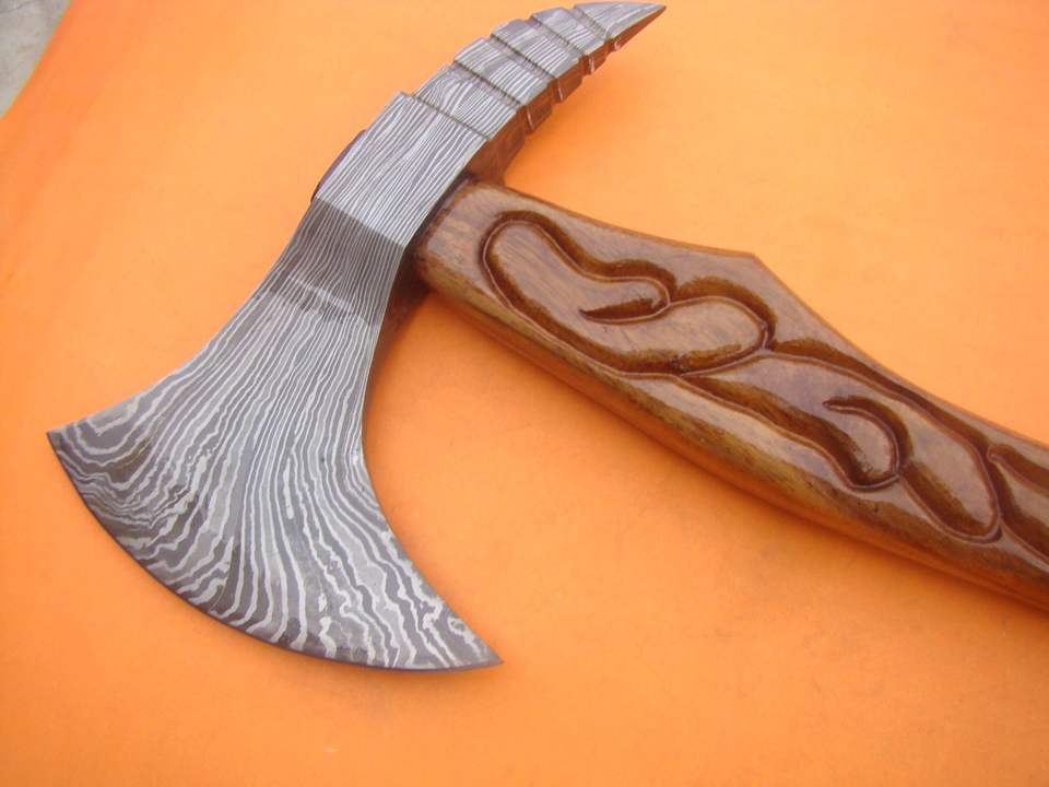 Custom Handmade Damascus Steel Viking Axe with Wood Handle and Leather Case\Hot Selling Outdoor Camping Pizza Axes