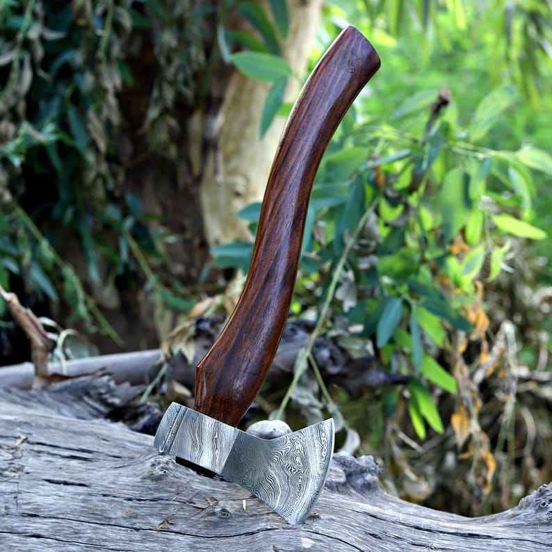 Custom Handmade Damascus Steel Viking axe Wooden Handle and Fine Sheath Premium High Quality Outdoor Camping Industrial Grade