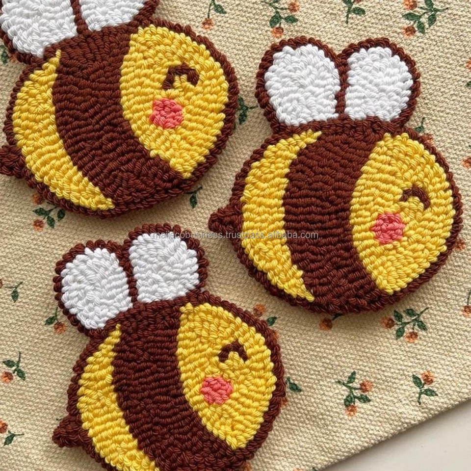 Custom Handmade Embroidery Punch Needle Wool Mug Rug Coasters Sublimation Blanks As Design for Gifts