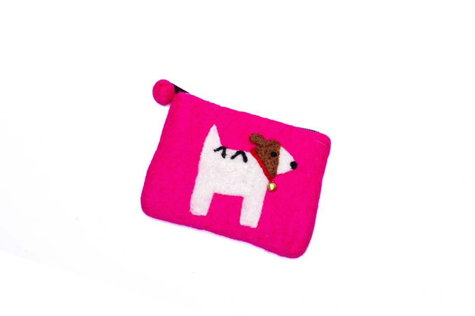Custom Handmade Felt Coin Purse with Dog Design and Flowers Open Pouch for Lady Fashion & Women