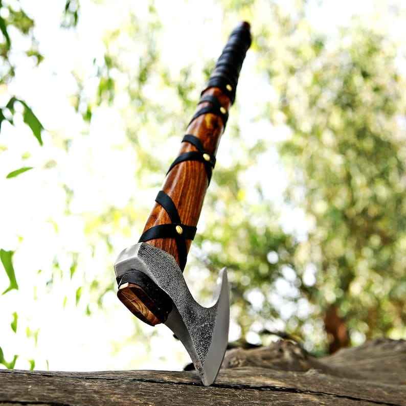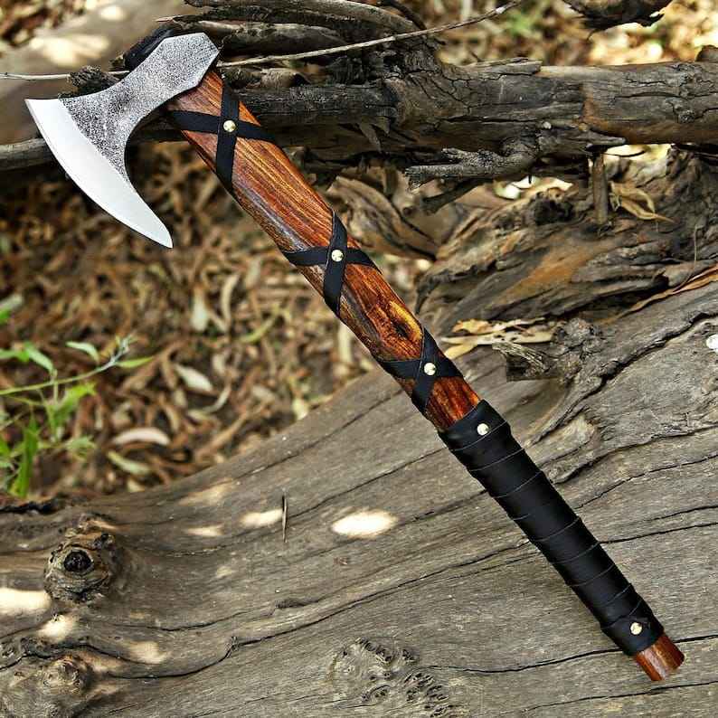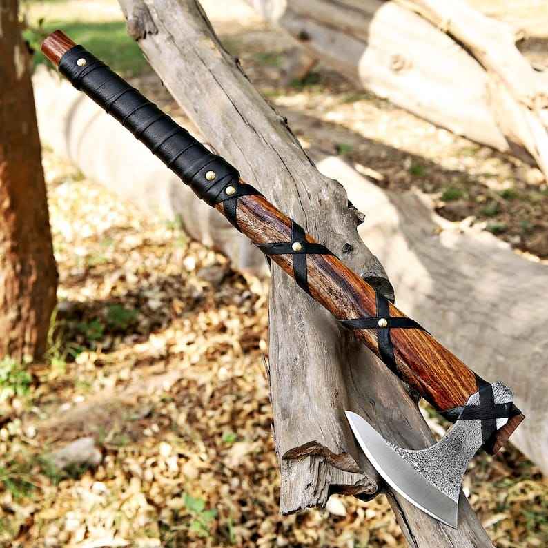 Custom Handmade Groomsmen Gift Forged Viking Splitting Axe with Rosewood Handle and Leather Cover High Carbon Steel