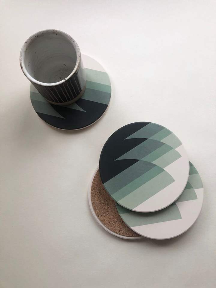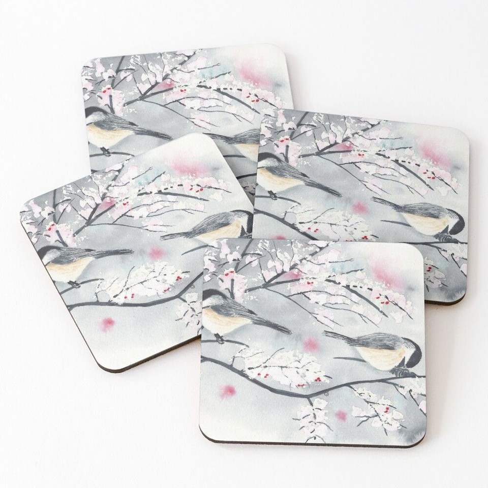 Custom Handmade Handmade Collection Decorative Meena Printed Floral coaster Set with Matching Wooden Storage India