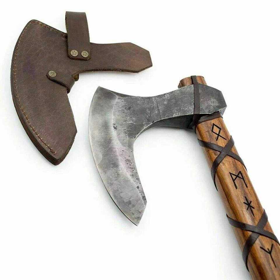 Custom Handmade High Carbon Steel Viking Axe Flat Backed DIY Survival Outdoor Axe with Wooden Handle