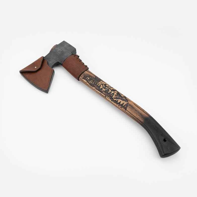 Custom Handmade High Quality Perfect Axe Camping & Hunting Gift Sheath Hand Forge Carbon Steel Viking Axe with Carved Handle