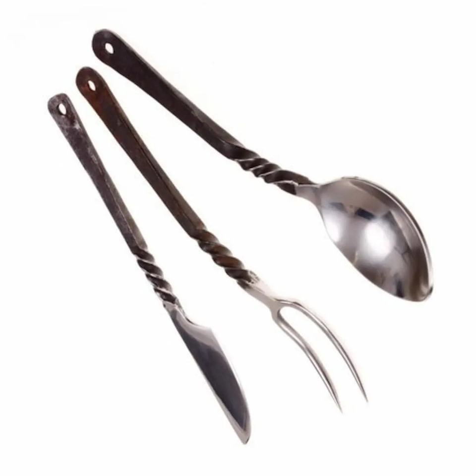 Custom Handmade High Quality Stainless Steel Medieval Look 3-Piece Cutlery Set New Finished Spoon Fork with leather Cover