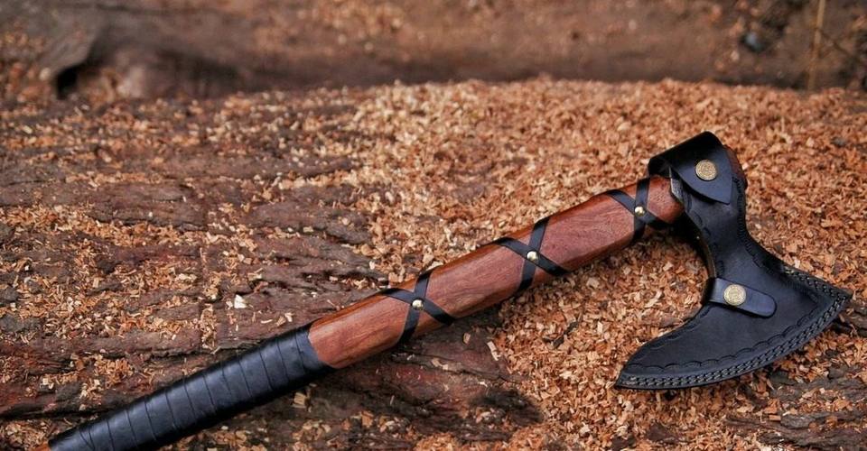 Custom Handmade Industrial Grade High Carbon Steel Viking Hatchet with Leather Wrapped Handle for Camping