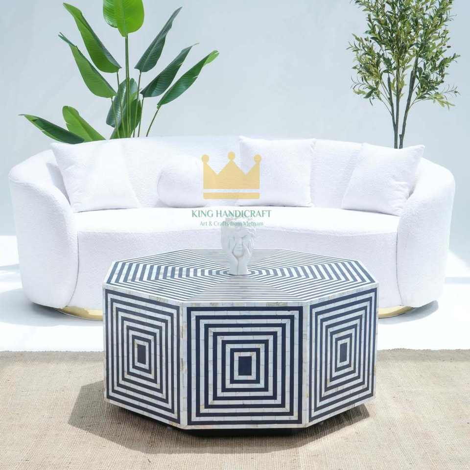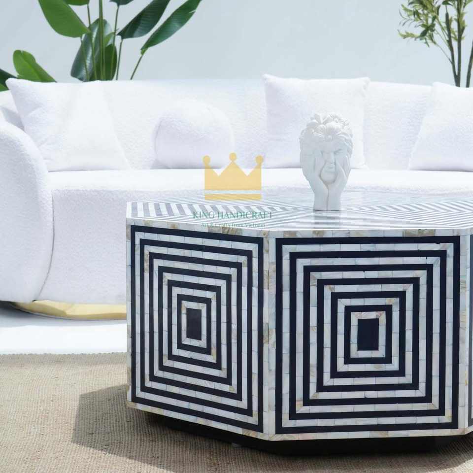 Custom Handmade Modern Style Mother of Pearl Coffee Table Exquisite Inlay Art Furniture for Home Decoration