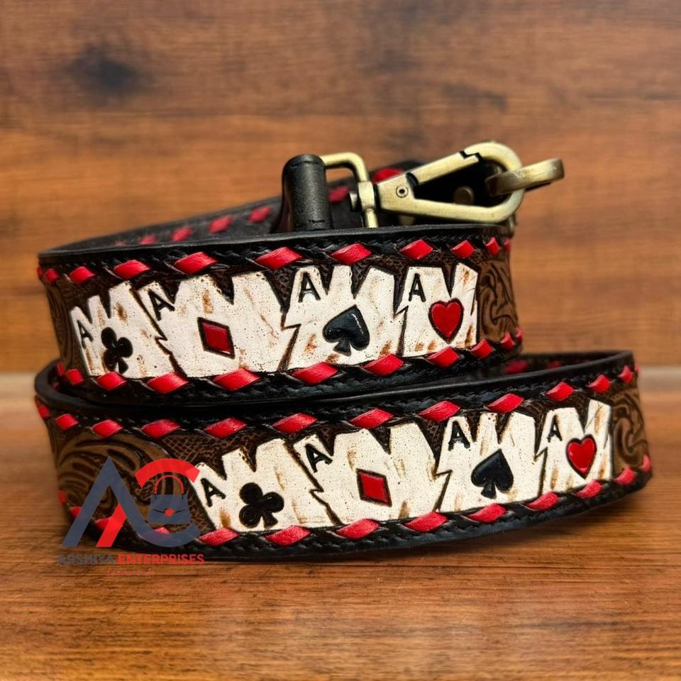 Custom Handmade New Aces Design Cowhide Leather Camera Shoulder Straps High Quality Hand Tooled Replacement Crossbody Bag Straps