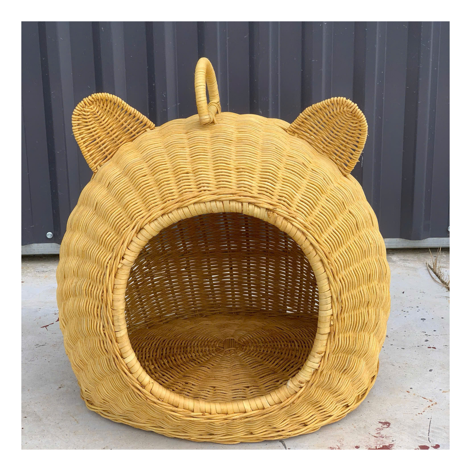 Custom Handmade Rattan Dog & Cat Bed with Soft Cushion, Comfortable and Breathable Pet House for Stylish Home Decor