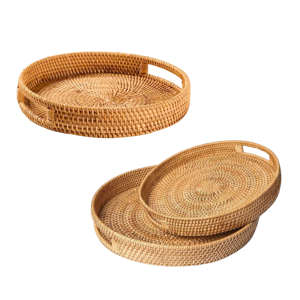 Custom Handmade Round Wicker RATTAN BASKET / TRAY Customizable From Vietnam Durable Functional Design Home Decor