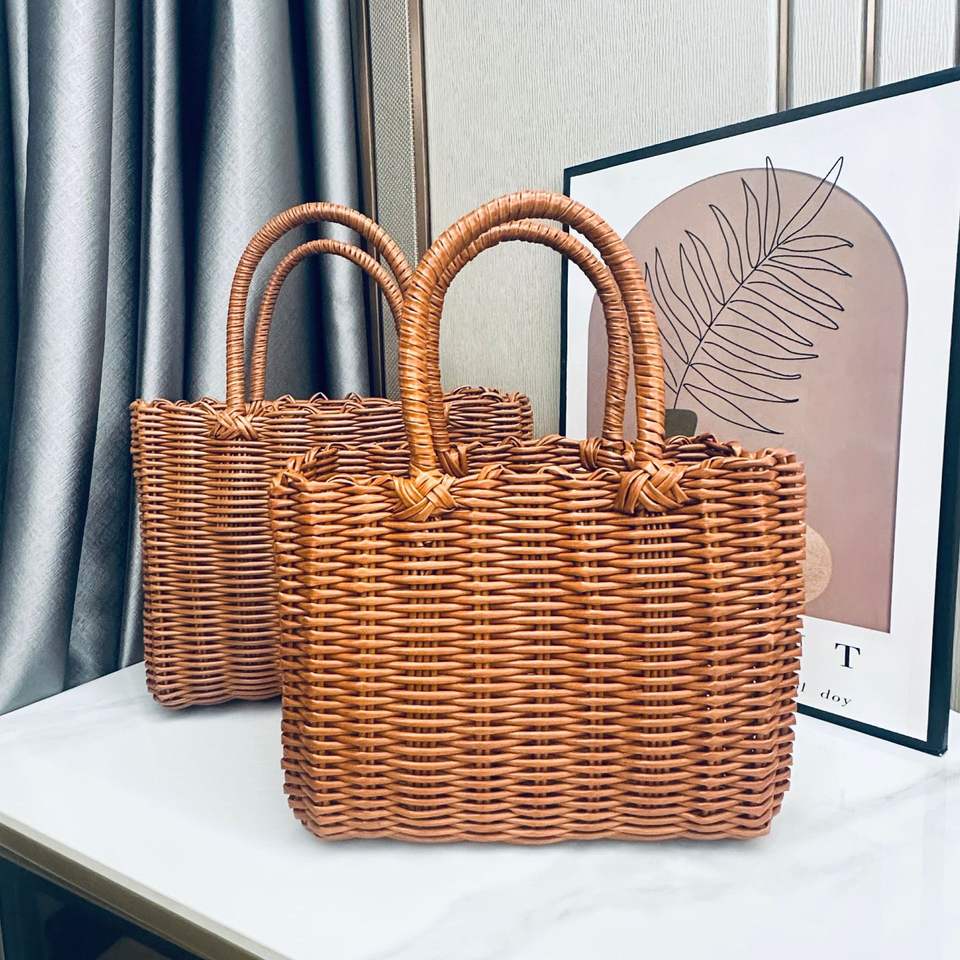 Custom Handmade Woven Bamboo Bag Straw Rattan Tote Basket Natural Fiber Gift Package Souvenir Bag for Women Beach Holiday