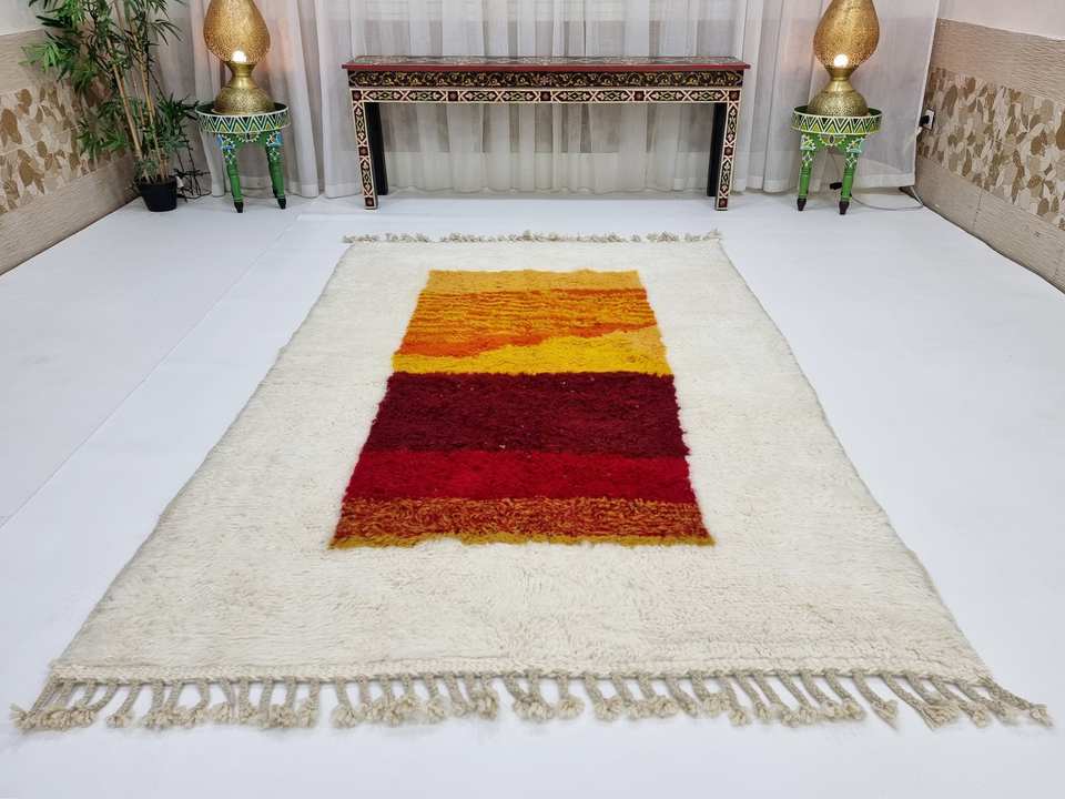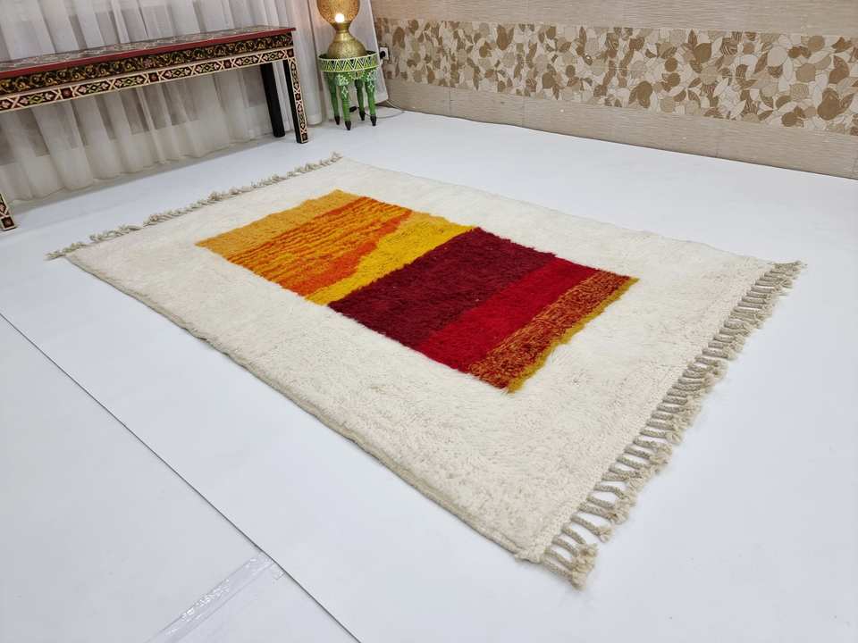 Custom Handwoven Moroccan Beniourain Abstract Sheep Wool Carpet Modern Style Ivory Mustard Rug for Home Hotel Office Use
