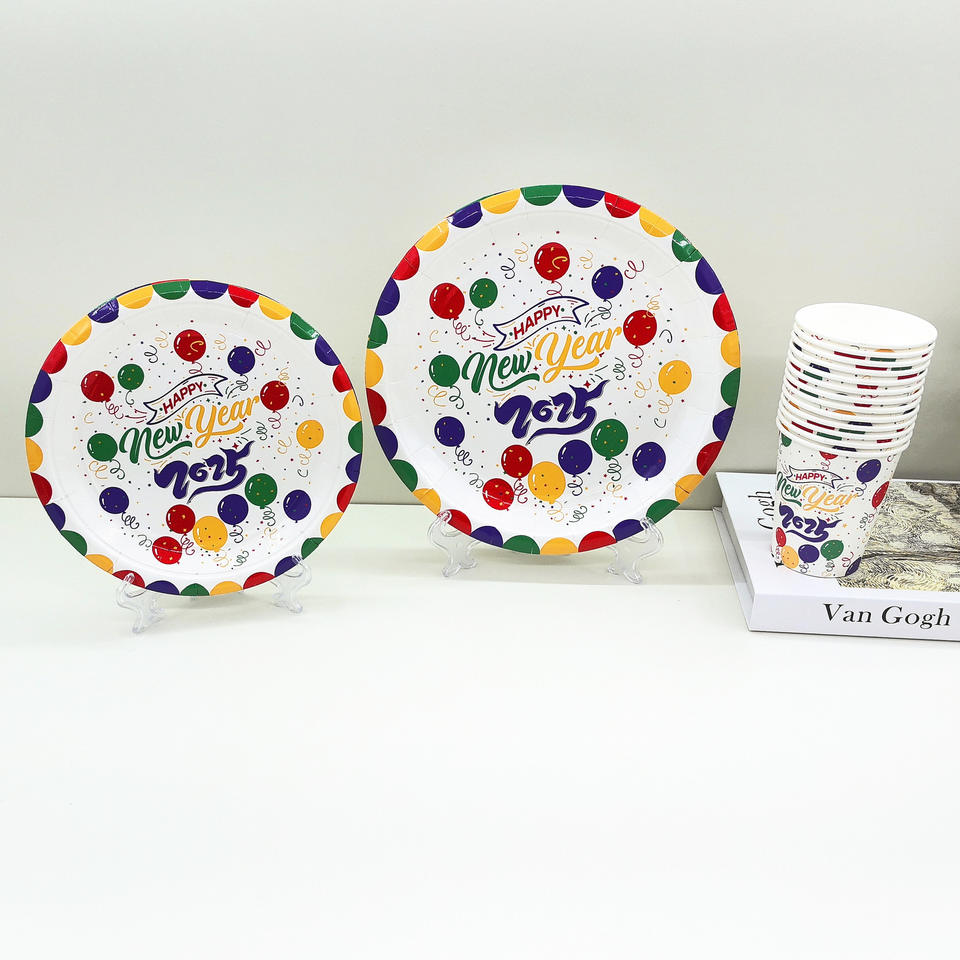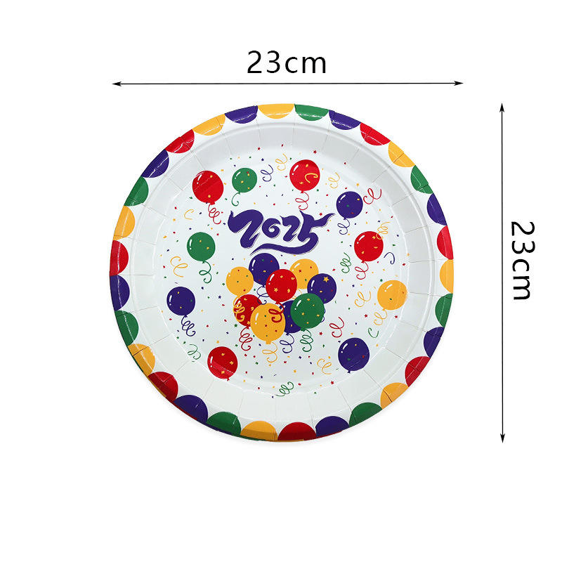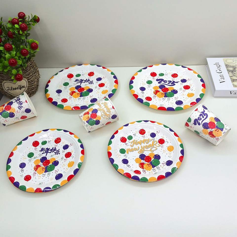 Custom Happy New Year Tableware Paper Plate Disposable Food Grade Plate Fruit Plate Paper Cup for Party