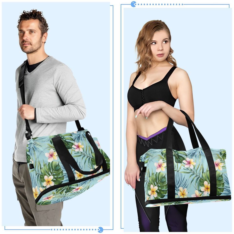 Custom Hawaii Flower Large Capacity Waterproof Polyester Storage Luggage Duffel Fitness Portable Travel Bag With Makeup Pouch