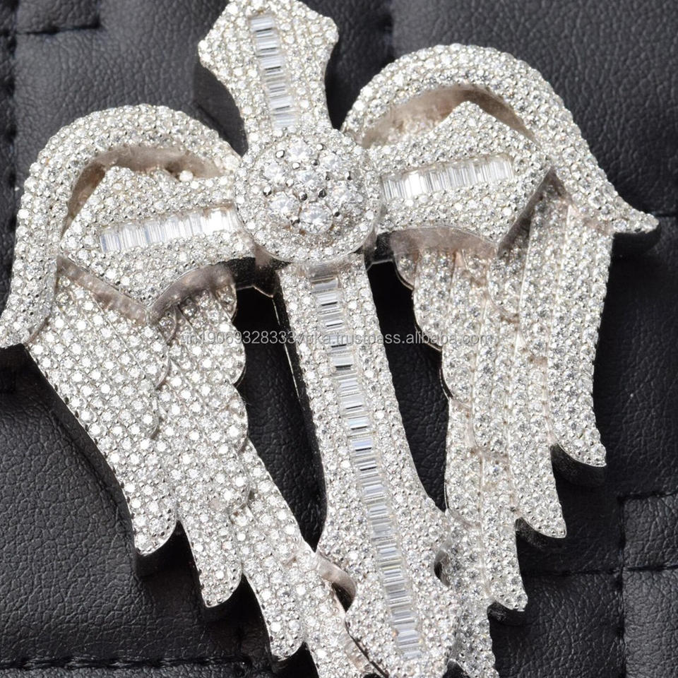 Custom Heart Cross Moissanite Pendant 925 Sterling Silver Rhodium Plated Baguette Iced Jesus Cross Trendy Hip Hop Mens for Gift