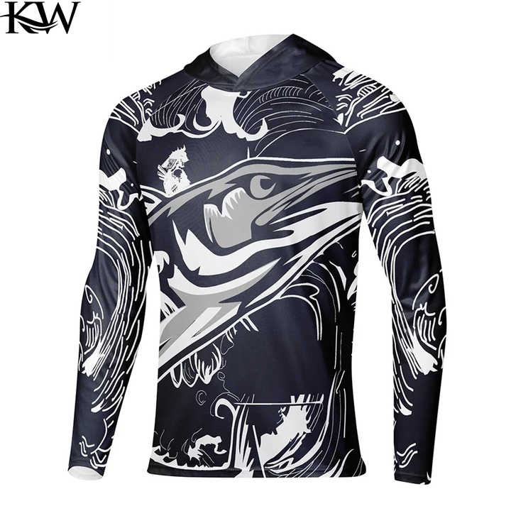 Custom Heat-Transfer Printed 100% Polyester UPF 50 Quick Dry Fishing Hooded Jersey for Men Outdoor Summer 2026
