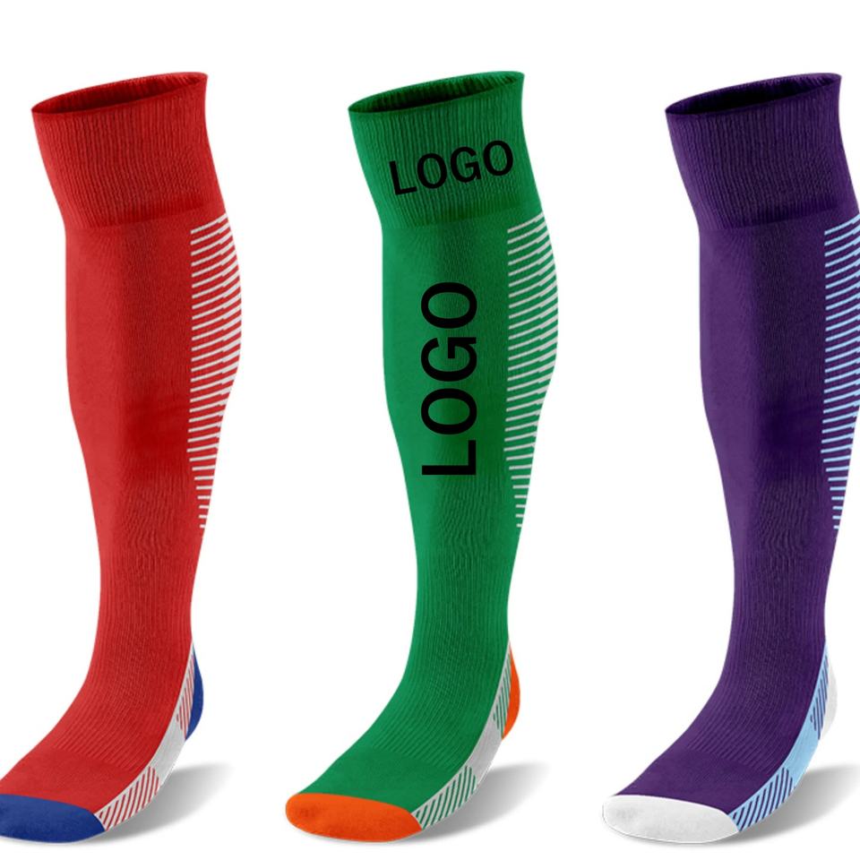 Custom Heat-Transfer Printed Breathable Quick Dry Men's Adult Knee-High Soccer Football Sports Socks Crew Knitted for Spring